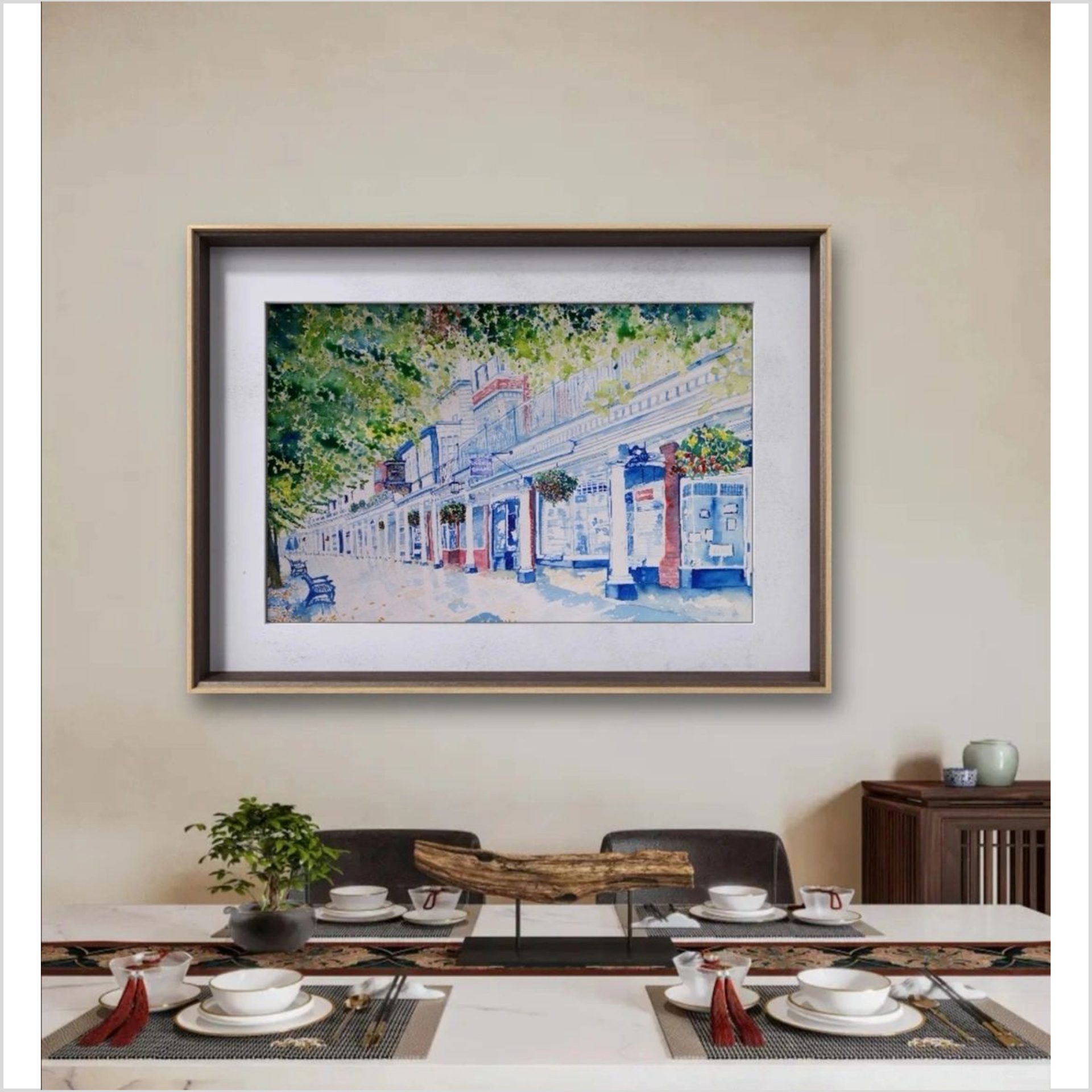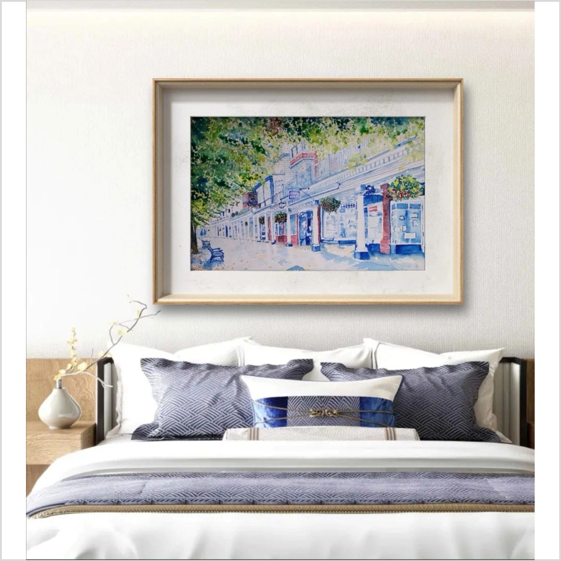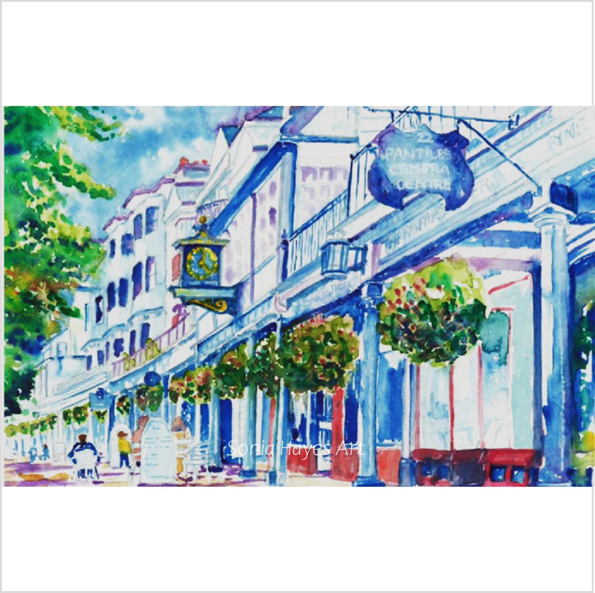 This is an A3 high quality limited edition giclee print on museum paper white 240gsm of the Pantiles in Royal Tunbridge Wells showing the famous clock. It is presented with a mount and backing board and comes wrapped in a biodegradable cello sleeve. This limited edition print is part of a series of 100 and printed to order due to customizable options.