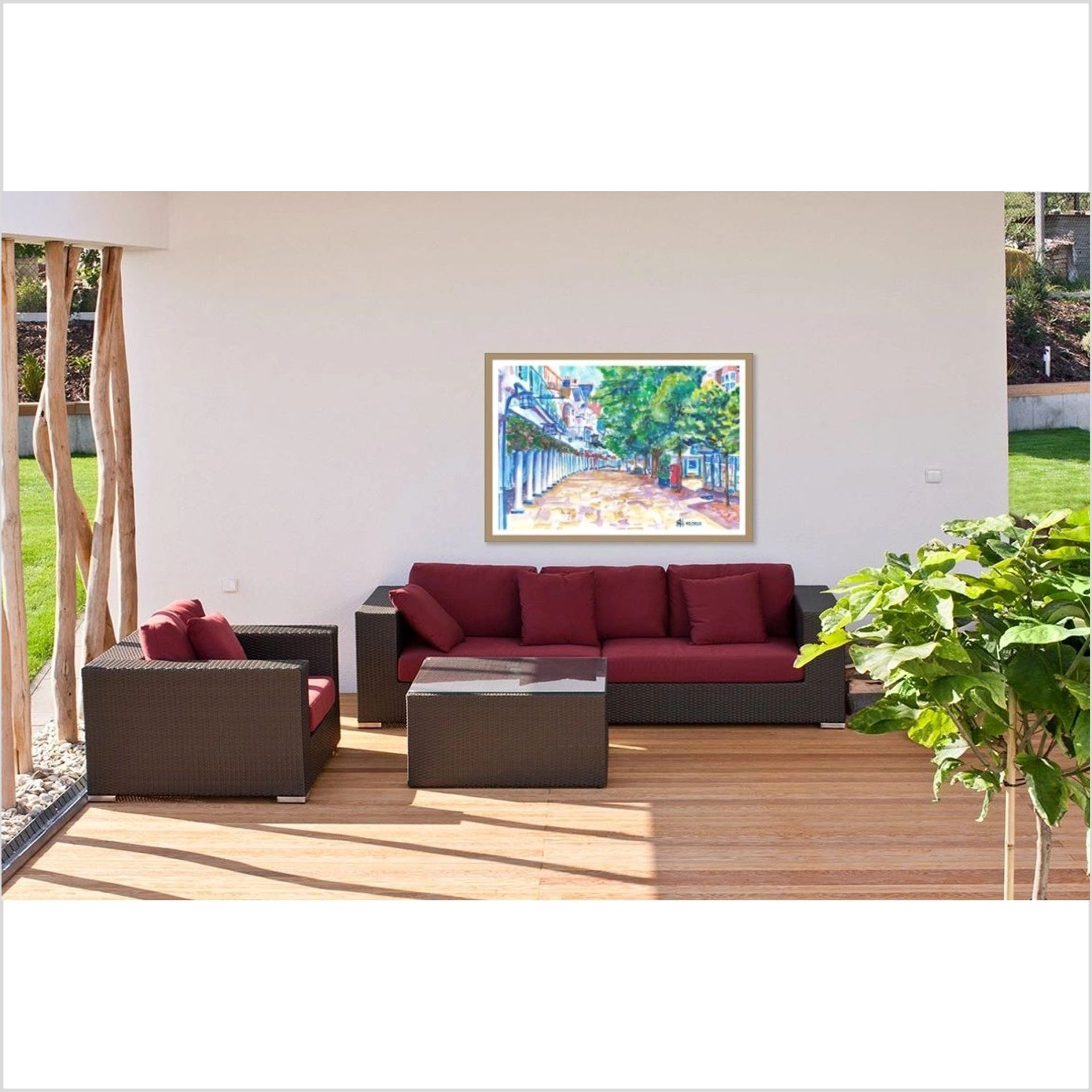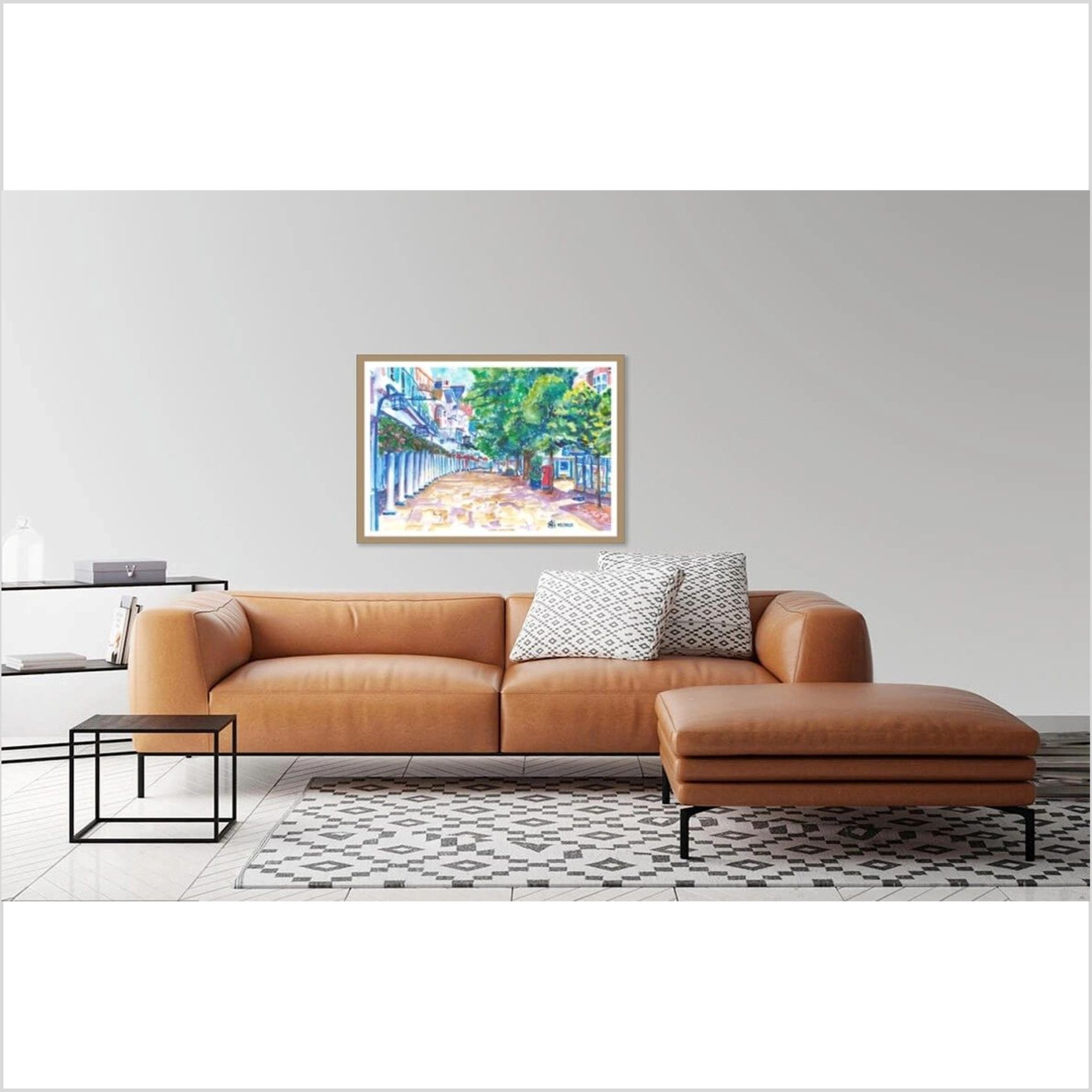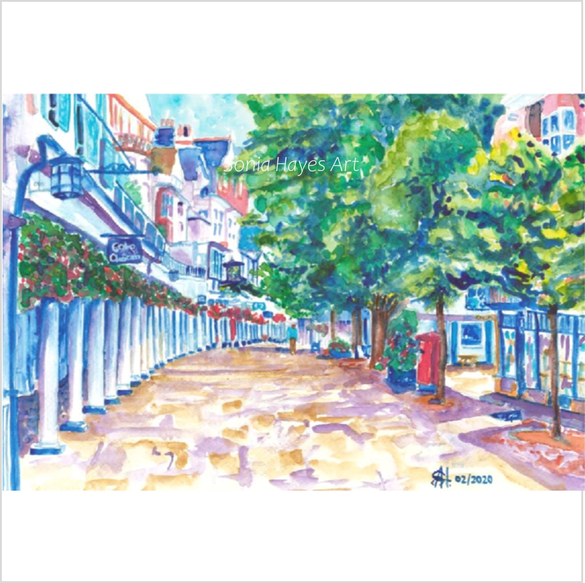 This is an A3 high quality limited edition giclee print on museum paper white 240gsm of the Pantiles in Summer. The Pantiles is especially close to Sonia’s heart as it is the life blood of Royal Tunbridge Wells and the place she spent the last years of her sister’s life, with her. It is presented with a mount and backing board and comes wrapped in a biodegradable cello sleeve. This limited edition print is part of a series of 100 and printed to order due to customizable options.